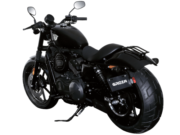 GROZA Toughman 800 – суровый и брутальный круизёр, который сразу обращает на себя внимание в потоке своей схожестью с кастом-байком: спартанской простотой с монохромной гаммой, олдскульными элементами, изящно оформленным двигателем, великолепной выхлопной системой и широченной задней покрышкой.Двухцилиндровый V-образный двигатель объёмом 800 см3 мощностью 61 л.с. при высоких показателях динамики и отличном крутящем моменте способен разгонять аппарат до 160 км/ч. Инжекторный впрыск топлива с инжектором DELPHI увеличивает топливную экономичность, а также позволяет добиться высокой приёмистости и неприхотливости агрегата. Привод на ведущее колесо осуществляется ремнём знаменитой марки USA Gates. Жидкостная система охлаждения не допустит перегрева мотора даже при самом агрессивном вождении.Аппарат имеет 6-ступенчатую механическую коробку передач с классической схемой “1-N-2-3-4-5-6”. На мотоцикл установлены литые алюминиевые диски диаметром 19 дюймов спереди и 17 дюймов сзади. Ширина передней покрышки – 130 мм, задней – целых 240 мм! С неровностями дороги эффективно справляются телескопическая вилка спереди и маятник с двумя газонаполненными амортизаторами сзади. Эффективное и безопасное замедление с любых скоростей обеспечивают гидравлические дисковые тормоза спереди и сзади.Байк обладает внушительным дорожным просветом 160 мм, что позволяет, при желании, съезжать на дороги с худшим покрытием, нежели асфальт. Зеркала не выходят за габариты руля, что позволяет комфортно проезжать на нём в междурядье.Мотоцикл сочетает в себе отличные технические характеристики, комфорт и надёжность, что позволяет вам ощутить настоящую свободу на любой дороге.