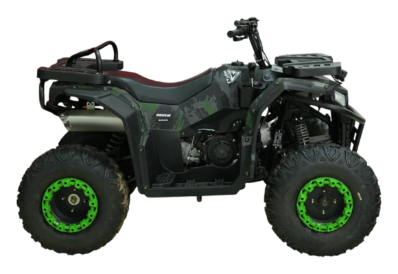 Камуфляжный окрас не поможет подростковому бензиновому квадроциклу затеряться среди окружения, а совсем наоборот – благодаря стильному и яркому дизайну он будет центром внимания и выгодно выделяется среди похожих по характеристикам моделей.