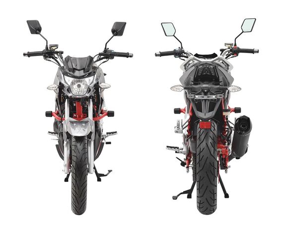 Мотоцикл Regulmoto Raptor 250 – популярная модель стрит-байка, завоевавшая признание множества поклонников двухколесной мототехники в различных странах мира. Данный мотоцикл вы можете купить в нашем мотосалоне или интернет-магазине с доставкой до терминала транспортной компании в вашем регионе.Regulmoto Raptor производится силами одного из крупнейших игроков китайской мотоиндустрии Senke. Специалисты компании основательно поработали как над современным дизайном мотоцикла, так и над его техническим оснащением. В раме байка стоит проверенный временем очень надежный и неприхотливый 4-тактный двигатель с воздушным охлаждением рабочим объемом в 250 см3. Наличие балансирного вала позволяет снизить до минимальных значений уровень вибраций при работе мотора, который в паре с дроссельным карбюратором способен демонстрировать до 19 «лошадей» максимальной мощности. Мотор можно запускать как при помощи кнопки электростартера, так и кик-стартером.Комфорт эксплуатации Regulmoto Raptor на асфальтированных дорогах и грунтовых проселках обеспечивает система амортизации мотоцикла, которую представляют моноамортизатор сзади и телескопическая вилка спереди. За безопасное использование отвечают дисковый тормоз в переднем колесе и барабанный тормоз в ступице заднего колеса. Этот современны и надежный мотоцикл станет отличным выбором транспортного средства для решения повседневных задач как в городе, так и за его пределами.