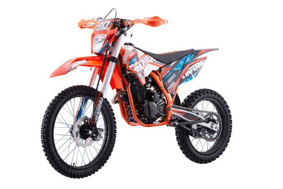 Главная ... Мотоциклы внедорожные Кроссовый мотоцикл PROMAX INFERNO 380 (4 valves, 6 gears) оранжево - черный-синий