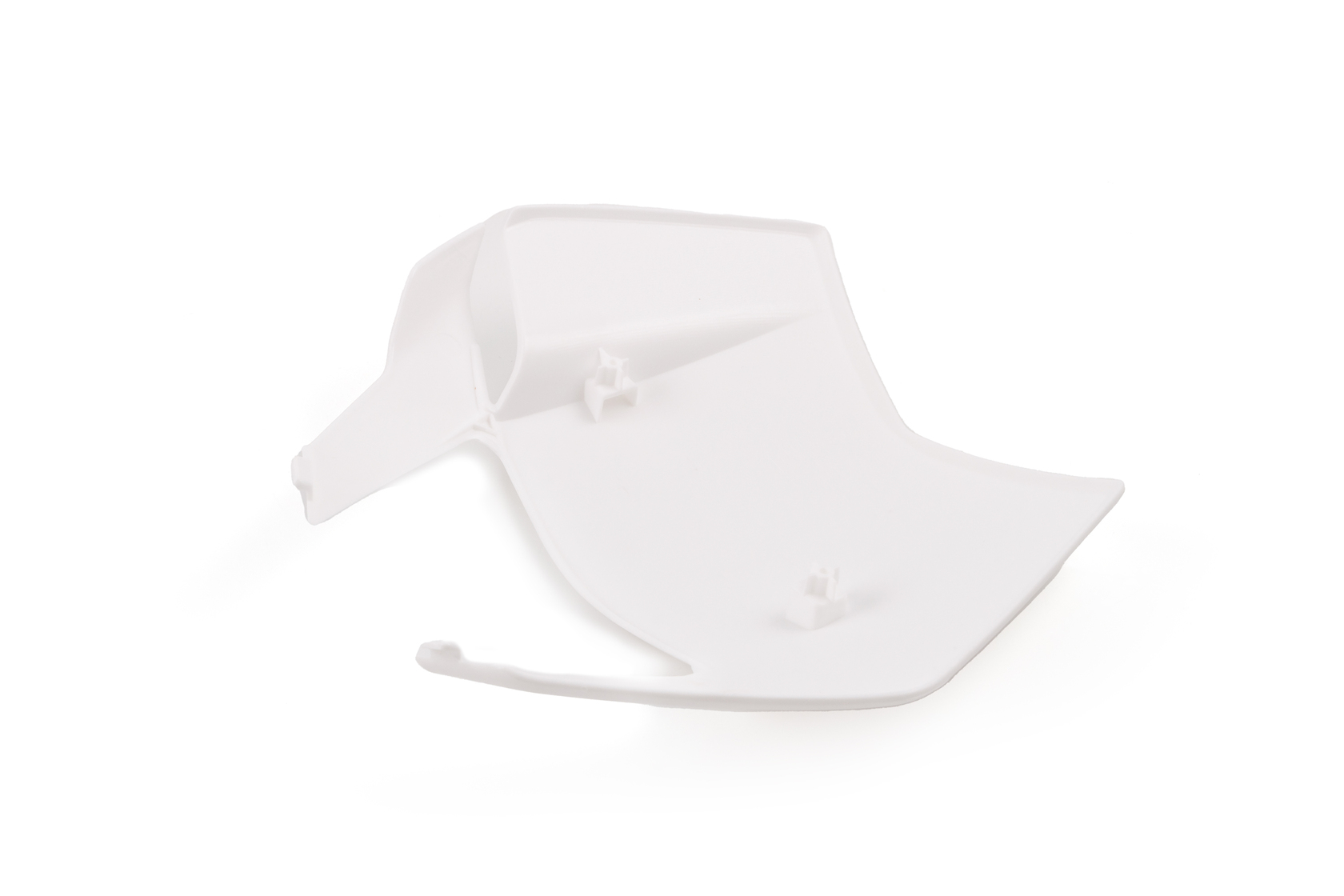 Фронтальная облицовка (обтекатель) фары белого цвета для современных мотоциклов и питбайков. Деталь придаёт байку законченный внешний вид, защищает фару от механических повреждений, а также скрывает крепления и проводку.