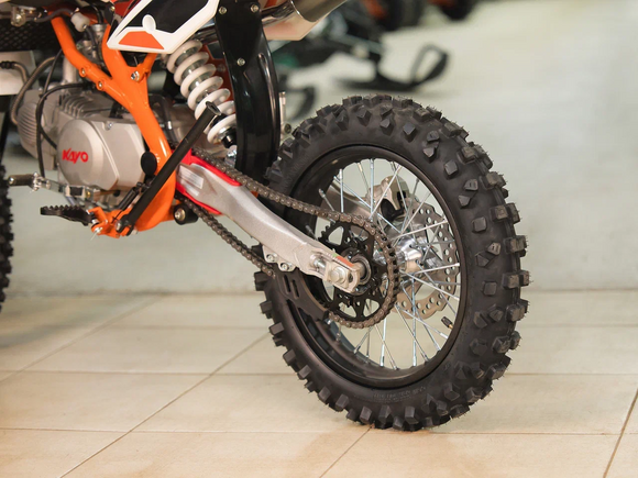 Питбайк KAYO Basic TT140 KRZ – версия для прогрессирующих и хороший старт для тех, кто готов перейти от базовых тренировок к более сложным заездам. Подходит для лёгкого эндуро и оттачивания мастерства.Одноцилиндровый 4-тактный двигатель воздушно-масляного охлаждения YX1P56FMJ объёмом 140 см3, выдаёт 13 л.с. Карбюратор NIBBI PE19 обеспечивает бесперебойную работу техники в самых жёстких условиях эксплуатации, простоту и лёгкость в обслуживании, а также неприхотливость к качеству топлива. Питбайк имеет вместительный топливный бак на 5,5 л. Питбайк оснащён механической 4-ступенчатой коробкой передач с формулой “N-1-2-3-4”. Запуск двигателя осуществляется с помощью рычага кикстартера.Мотоцикл имеет вес всего 73 кг. Усиленная рама из хром-молибденового сплава и подвеска позволяют эффективно амортизировать удары при езде по неровностям и препятствиям на трассе. Передняя подвеска — телескопическая вилка перевёрнутого типа длиной 770 мм, задняя — моноамортизатор длиной 360 мм. Оба компонента подвески являются нерегулируемыми. Рама и пластик являются собственной разработкой производителя. Мотоцикл оснащён классическими стальными спицованными колёсами диаметром 17 дюймов спереди и 14 дюймов сзади. Эффективное и безопасное замедление с любых скоростей обеспечивают гидравлические дисковые тормоза. Высококачественная износостойкая резина с развитым протектором отлично держит дорогу на различных типах покрытия.Питбайк оснащён яркой светодиодной линзованной фарой, позволяющей кататься в тёмное время суток.Если вы ищете послушный, компактный, динамичный и красивый питбайк, считайте, что вы его нашли. Это один из лучших мотоциклов для обучения и первых шагов в эндуро и мотокроссе. Он отлично подойдёт как для гонок на трассе, так и для обычного катания по пересечённой местности.
