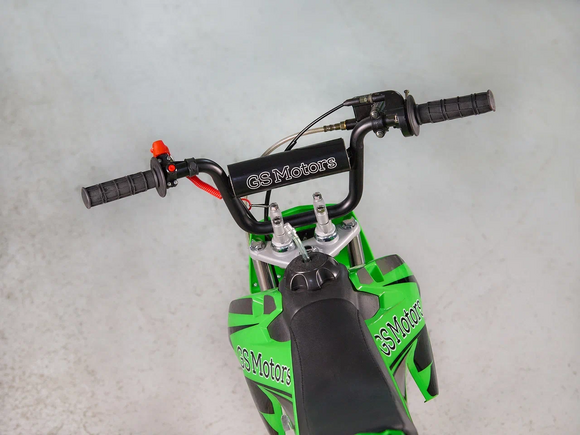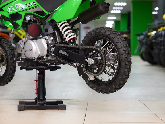 Недорогой надёжный питбайк GS Motors S7 идеален для поездок по грунтовым дорогам и бездорожью для детей которые уже научились ездить на маленьких мотоциклах объемом 50 куб.см. Хорошо чувствует себя на мягком и среднем грунте, разгоняется до 50 км/ч.Питбайк прост в управлении и не требует специального ухода, подойдёт детям до 7 лет.Передняя подвеска — телескопическая нерегулируемая вилка. Задняя подвеска маятниковая с моноамортизатором. Руль 22 мм с высоким подъёмом и перекладиной удобен для мотоциклистов разного роста.Питбайк весит всего 50 кг, при этом выдерживает вес до 60 кг. Колёса спицованные. Размер заднего и переднего колеса — 10 дюймов. Тормоза дисковые, передний тормозной суппорт двухпоршневой, задний — однопоршневой.Питбайк оснащён карбюратором с фильтром нулевого сопротивления и одноцилиндровым четырёхтактным двигателем с воздушным охлаждением. Надёжный мотор мощностью 5 л. с. и объемом 70 см³. Трансмиссия - четырехступенчатая. Система зажигания электронная (CDI), запуска двигателя - кикстартер.Питбайк относится к недорогим моделям, которые при должной эксплуатации работают без сбоев, неприхотлив в обслуживании, не занимает много места в гараже.
