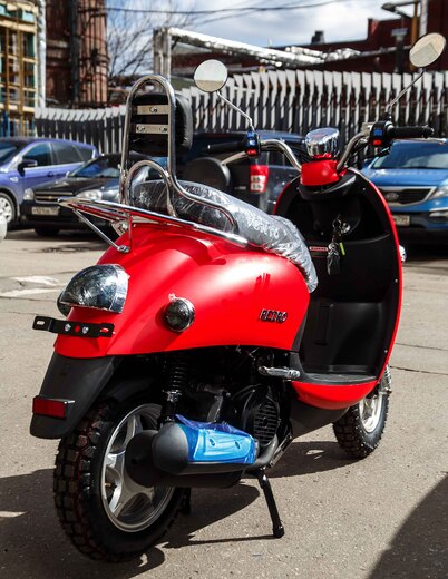 Главная ... Скутеры VENTO Скутер VENTO RETRO 49cc (150) сигнализация (99кг/100кг) (Красный Матовый)